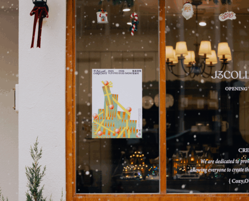 2025 勤美草悟聖誕村以「進入雪之森」打造冬日光廊與雪景,也串連勤美術館《Input > Unknown》沉浸式光影展,讓草悟道在日與夜之間呈現跨街區的冬季城市節慶風景。